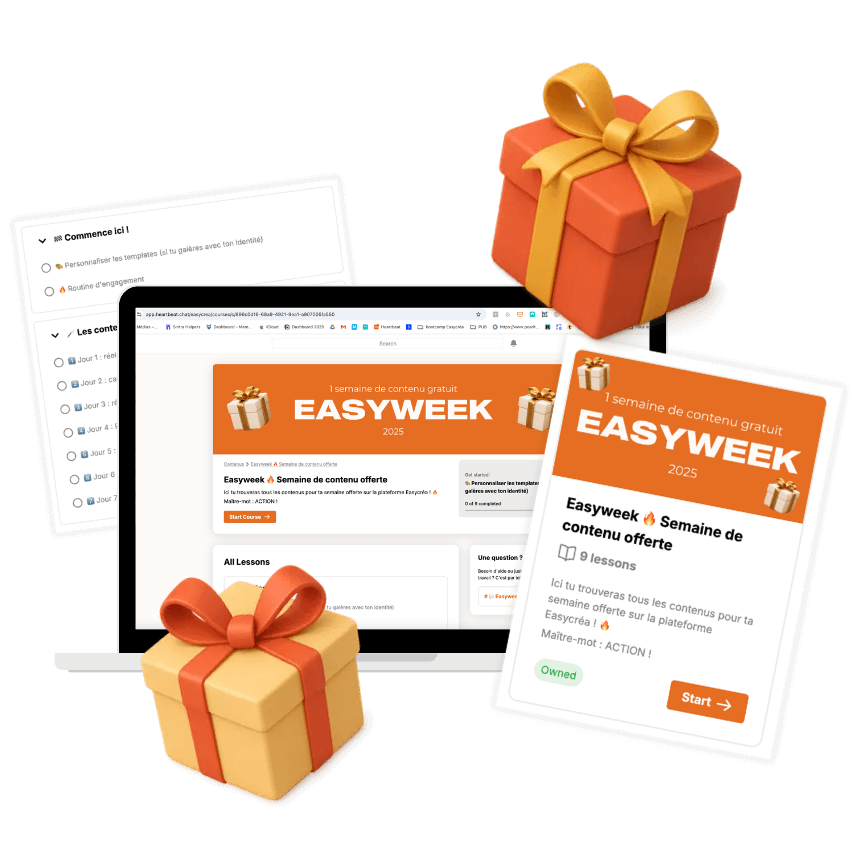 EasyCrea, c’est du contenu prêt à poster chaque mois. Stop la panne d’inspiration, stop la galère.
