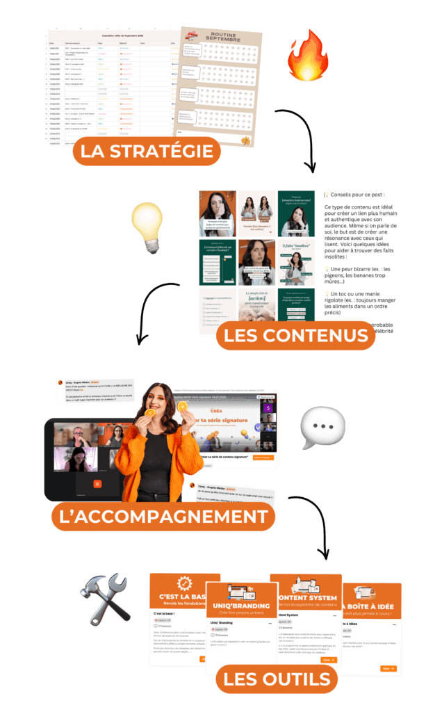 Chaque mois, tu reçois tout ce qu’il te faut pour publier 5x par semaine avec stratégie et sérénité :